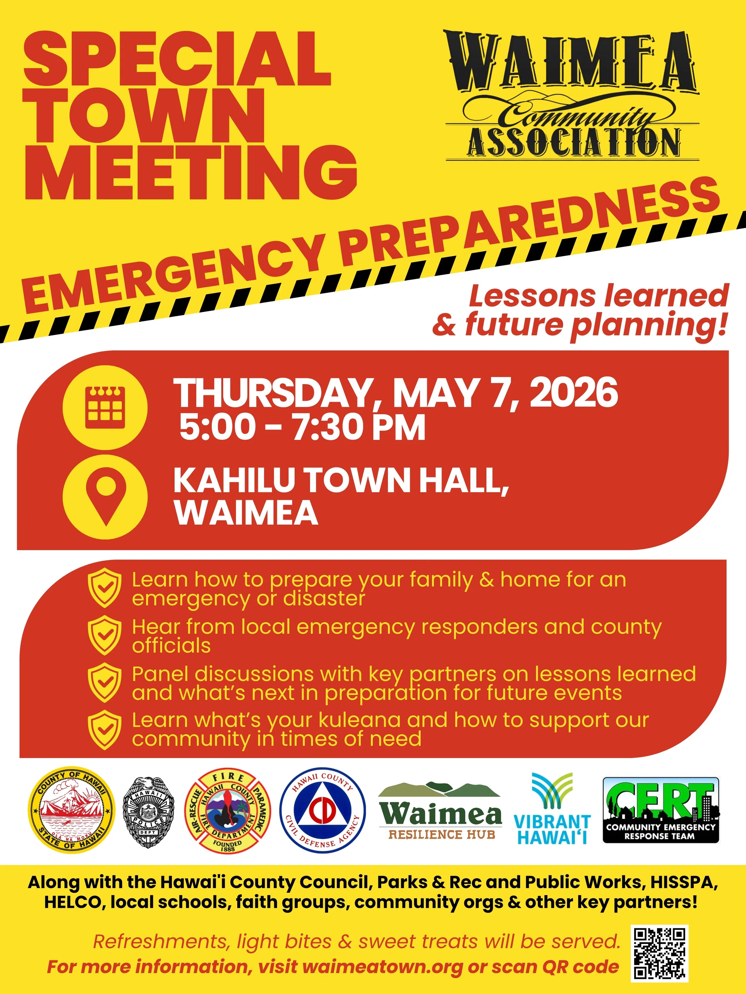 Next Waimea Town Meeting: 4:30-7:30PM, Thursday, May 7, 2026