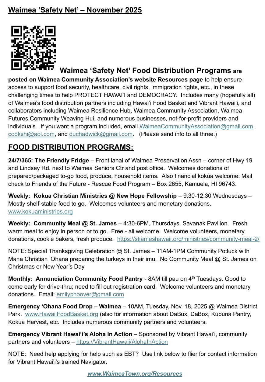 Please check back regularly for updates. Whenever possible, updates also posted as quickly as possible to www.Facebook.com/WaimeaCommunityAssociation